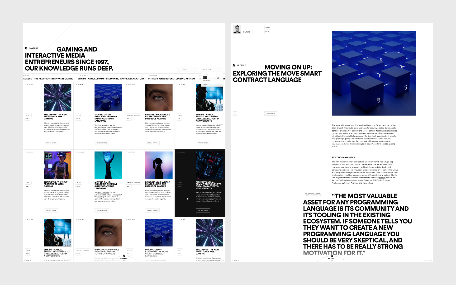 When Bitkraft, a leading Web3 gaming investment firm, sought a bold portfolio website to match their ambitious vision, I delivered an experience as innovative as their mission. Inspired by gaming mechanics, I led the creation of a WebGL-powered site that stands out in the competitive landscape by implemting keyboard controls and immersive 3D graphics. From first concepts and digital branding (custom iconography and typefaces) to UI design and animation direction, I crafted a seamless fusion of cutting-edge interactivity and striking aesthetics. The result is a website that not only showcases Bitkraft’s investments but also sets a new standard for digital storytelling in the Web3 space.